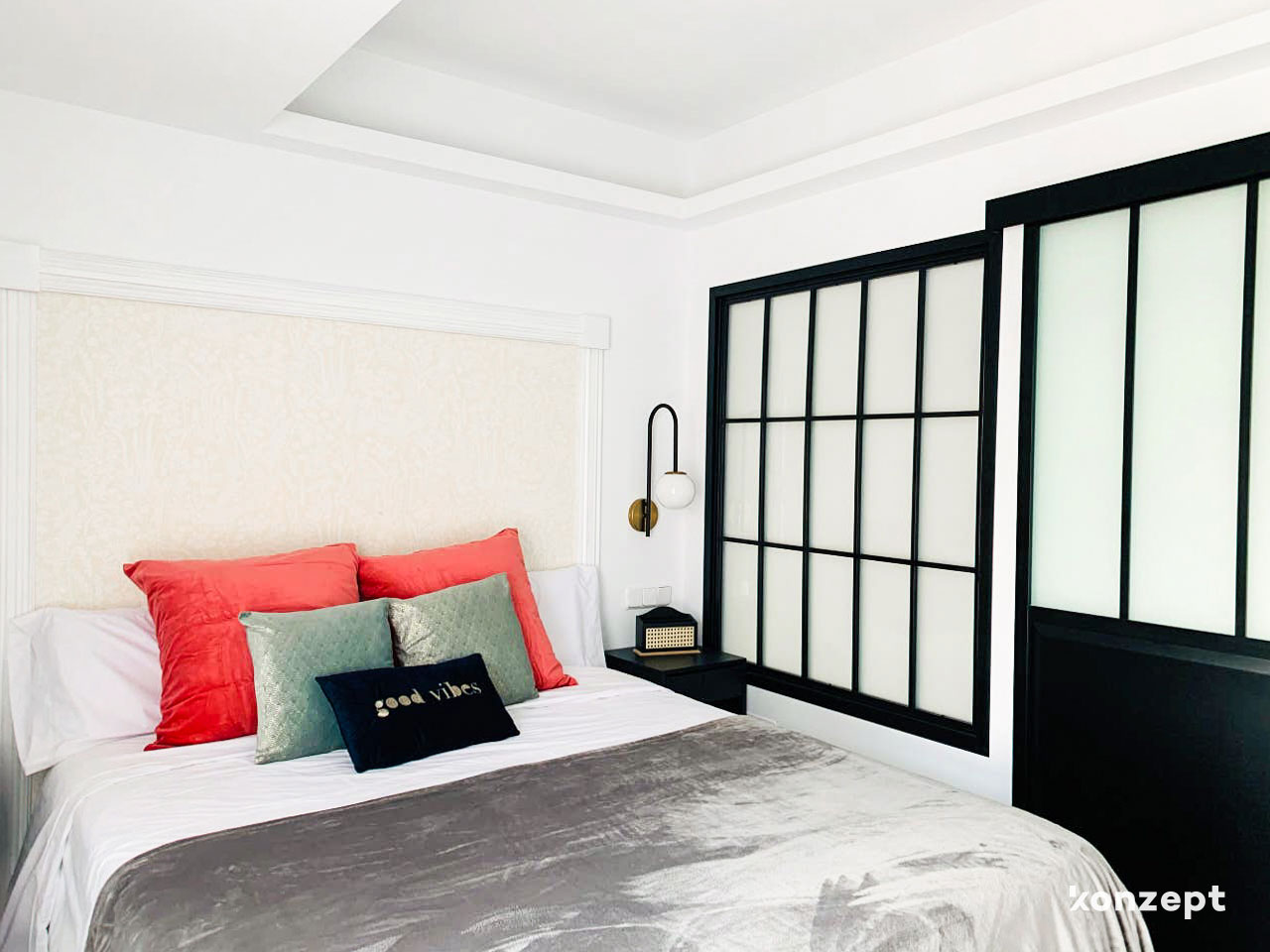 Este segundo loft que reformamos tenía el mismo destino de vivienda de alquiler vacacional con el nuevo reto de tener que conseguir dos dormitorios con dos baños completos y un aseo para la planta baja, con las limitaciones del espacio que tienen este tipo de construcciones conseguimos proyectar tras varias ideas de distribución incluyo añadiendo un vestidor.