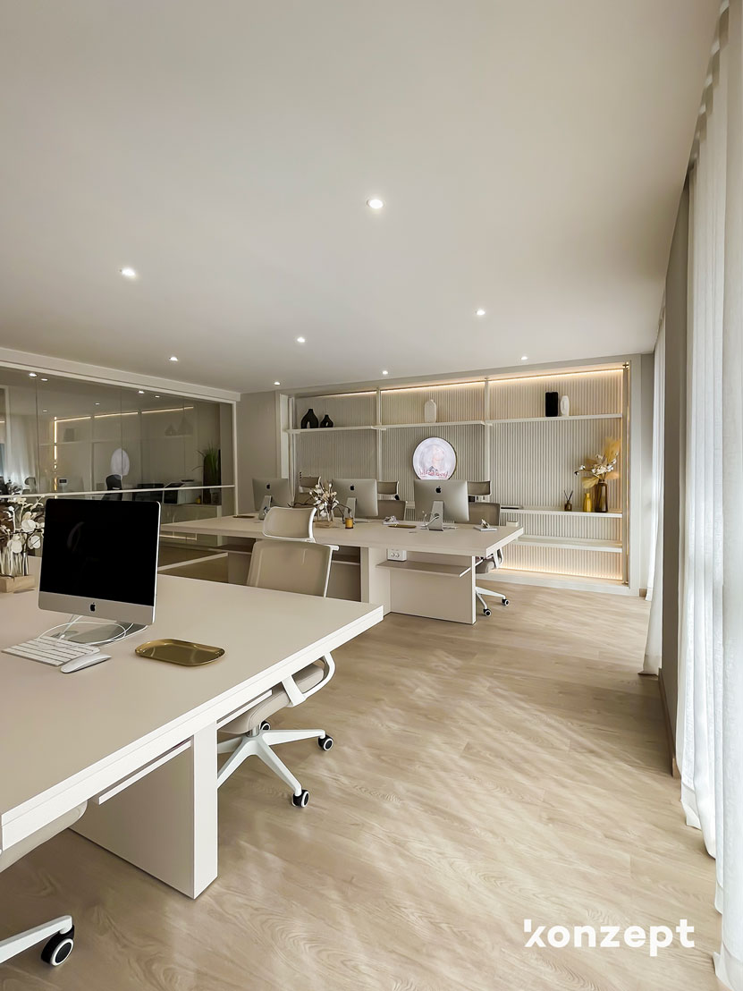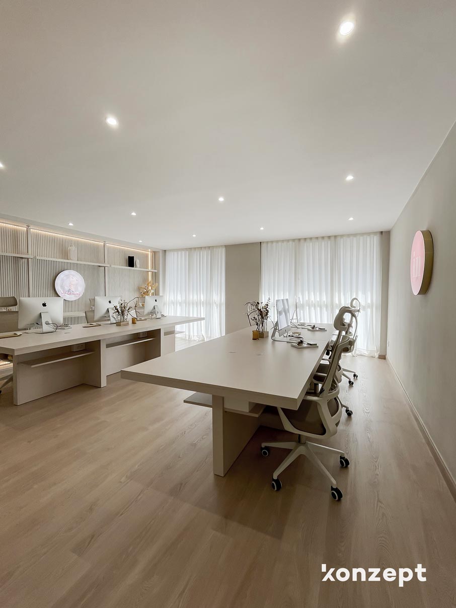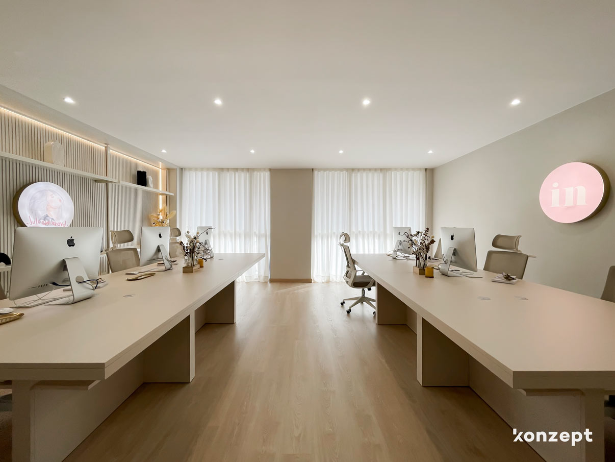 Continuamos con la línea de diseño y la identidad de marca creada para el interiorismo delas oficinas que rehabilitamos en Madrid adaptando al nuevo espacio de la sede del grupo en Badalona.